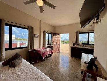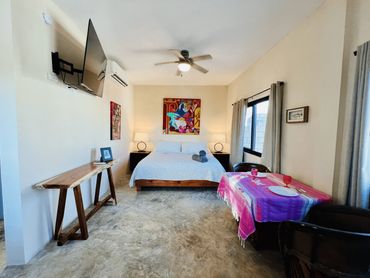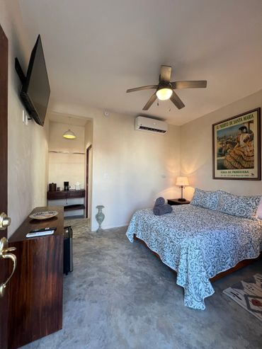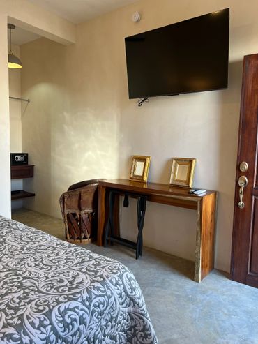 Most elemental room with a basic setup for travelers with good taste for a simple stay. Located right across from the jacuzzi and bar areas, it is small, cozy, with a smart TV, closet with safebox, king size bed and a private bathroom.